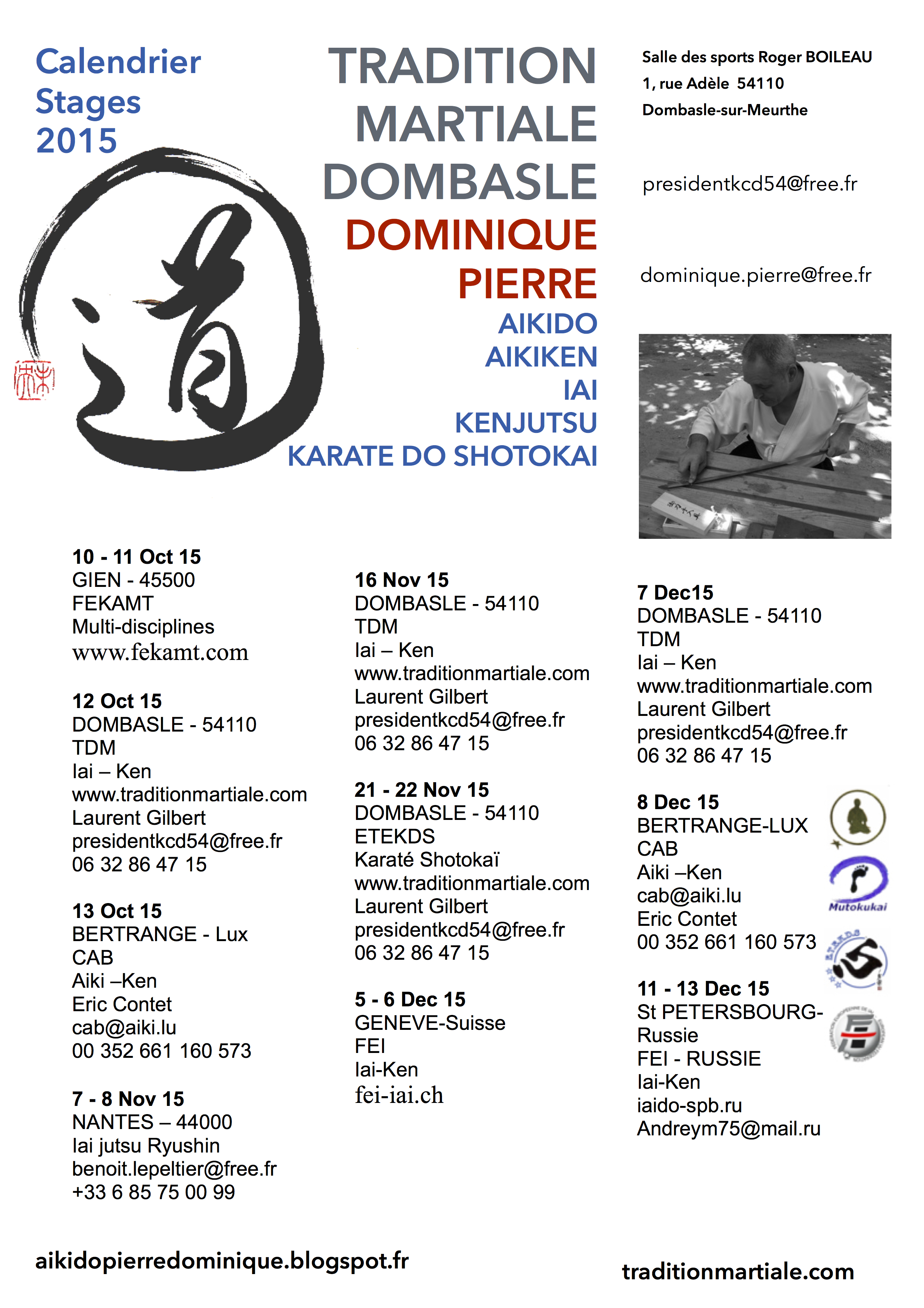 Calendrier des stages fin 2015 Publié le 5 octobre 20155 octobre 2015 par Tradition Martiale Dombasle Ce calendrier est sujet à modifications J’aime chargement… Sur le même thème